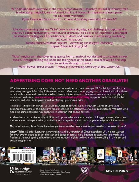 'A no-holds-barred overview of the very competitive but ultimately rewarding industry that is advertising. Insightful, well-informed, frank and honest. An inspirational eye-opener for all Adland wannabes' - Gyles Lingwood, Course Leader, Creative Advertising, University of Lincoln, UK 'Like the advertising business, Tibbs' book is dynamic, edgy, and challenging. It captures the industry's excitement, energy, intellect, and creativity. The book is an inspiration and should be standard reading for all practitioners, students, and faculty of advertising, marketing, and communications'- Pamela Morris, Loyola University Chicago, USA 'Tibbs' insights turn the advertising agency from a mythical wonderland to a realistic career choice. Through reading this book and taking note of his advice, students will be one step closer to walking through its doors' - Helen Powell, Senior Lecturer, Media and Advertising, University of East London, UK Advertising does not need another graduate! Whether you are an aspiring advertising creative, designer, account manager, PR / publicity consultant or marketing manager, Advertising is an engaging source of inspiration for those dark, idea-less days and a motivator when those job interviews or placements seem in short supply. Its Companion Website at: www.routledge.com/textbooks/advertising supports the book with further examples and ideas to inspire as well as offering up-to-date advice. This book is filled with numerous visual examples of advertising thinking. With words of advice and guidance from some of the industry's most respected practitioners and insights from graduates who faced the same challenges you will soon encounter in securing that elusive first job. Add to that, an extensive supply of hints and tips to enhance the creative thinking processes, take the work you do beyond what you think you are capable of and, crucially, gain an edge at job interviews. Maybe advertising doesn't need another graduate, but then you won't be just another graduate will you?