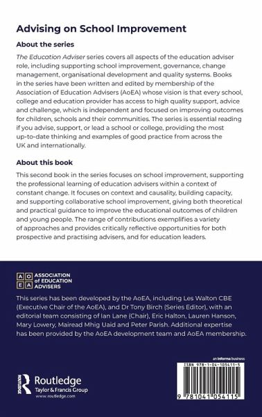 Theoretical and practical exemplification of the education adviser's skills, knowledge and understanding in relation to school improvement.