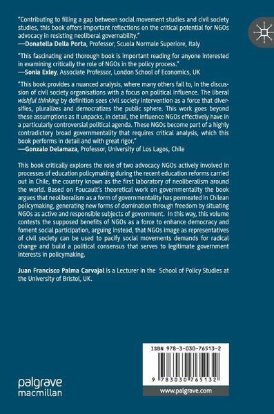 This book critically explores the role of two advocacy NGOs actively involved in processes of education policymaking during the recent education reforms carried out in Chile, the country known as the first laboratory of neoliberalism around the world. Based on Foucault's theoretical work on governmentality the book argues that neoliberalism as a form of governmentality has permeated in Chilean policymaking, generating new forms of domination through freedom by situating NGOs as active and responsible subjects of government. In this way, this volume contests the supposed benefits of NGOs as a force to enhance democracy and foment social participation, arguing instead, that NGOs image as representatives of civil society can be used to pacify social movements demands for radical change and build a political consensus that serves to legitimate government interests in policymaking.