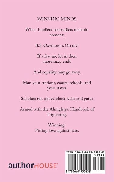 WINNING MINDS When intellect contradicts melanin content; B.S. Oxymoron. Oh my! If a few are let in then supremacy ends And equality may go awry. Man your stations, coasts, schools, and your status Scholars rise above block walls and gates Armed with the Almighty's Handbook of Highering. Winning! Pitting love against hate.