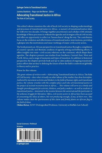 "This great volume of written work - Advocating Transitional Justice in Africa: The Role of Civil Society - does what virtually no other labor of the intellect has done heretofore. Authored by movement activists and thinkers in the fields of human rights and transitional justice, the volume wrestles with the complex place and roles of transitional justice in the project of societal reconstruction in Africa. ... This volume will serve as a timely and thought-provoking guide for activists, thinkers, and policy makers - as well as students of transitional justice - interested in the tension between the universal and the particular in the arduous struggle for liberation. Often, civil society actors inAfrica have been accused of consuming the ideas of others, but not producing enough, if any, of their own. This volume makes clear the spuriousness of this claim and firmly plants an African flag in the field of ideas."