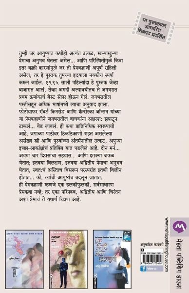 IF YOU`VE EVER EXPERIENCED THE ONE TRUE LOVE OF YOUR LIFE, A LOVE THAT FOR SOME REASON COULD NEVER BE, YOU WILL UNDERSTAND WHY READERS ALL OVER THE WORLD WERE SO MOVED BY THIS SMALL, UNKNOWN FIRST NOVEL THAT THEY MADE IT A PUBLISHING PHENOMENON AND #1 BESTSELLER. THE STORY OF ROBERT KINCAID, THE PHOTOGRAPHER AND FREE SPIRIT SEARCHING FOR THE COVERED BRIDGES OF MADISON COUNTY, AND FRANCESCA JOHNSON, THE FARM WIFE WAITING FOR THE FULFILLMENT OF A GIRLHOOD DREAM, THE BRIDGES OF MADISON COUNTY GIVES VOICE TO THE LONGINGS OF MEN AND WOMEN EVERYWHERE-AND SHOWS US WHAT IT IS TO LOVE AND BE LOVED SO INTENSELY THAT LIFE IS NEVER THE SAME AGAIN. ¿¿¿¿¿¿ ¿¿ ¿¿¿¿¿¿¿¿ ¿¿¿¿¿ ¿¿¿¿¿¿¿¿¿¿¿, ¿-¿¿ ¿¿-¿¿ ¿¿¿¿¿¿¿¿ ¿¿¿¿¿ ¿¿¿¿¿ ¿¿¿¿... ¿¿¿ ¿¿¿¿¿¿¿¿¿¿¿¿¿ ¿¿¿ ¿¿¿ ¿¿¿¿ ¿¿¿¿¿¿¿¿¿¿¿¿ ¿¿ ¿¿¿¿¿¿¿¿¿¿ ¿¿¿¿¿¿ ¿¿¿¿¿¿ ¿¿¿¿, ¿¿ ¿¿ ¿¿¿¿¿¿ ¿¿¿¿¿¿¿ ¿¿¿¿¿¿¿ ¿¿¿¿¿¿ ¿¿¿¿¿¿ ¿¿¿¿ ¿¿¿¿.¿¿¿¿ ¿¿¿¿ ¿¿¿¿¿¿¿¿¿¿ ¿¿ ¿¿¿¿¿¿ ¿¿¿¿¿¿ ¿¿¿¿¿¿¿ ¿¿¿, ¿¿¿¿¿¿ ¿¿¿¿ ¿¿¿¿¿¿¿¿¿¿ ¿¿ ¿¿¿¿¿¿ ¿¿¿¿¿ ¿¿¿¿¿¿¿¿¿¿ ¿¿¿¿¿¿¿¿¿ ¿¿¿¿ ¿¿¿¿.¿¿¿¿¿¿¿¿ ¿¿¿¿¿¿¿¿¿ ¿¿¿¿ ¿¿¿¿¿ ¿¿¿¿¿ ¿¿¿¿¿¿ ¿¿¿¿¿¿ ¿¿¿¿. ¿¿¿¿¿¿¿¿¿¿ ¿¿¿¿¿¿¿¿¿¿¿¿ ¿¿¿ ¿¿¿¿¿¿¿¿¿¿¿¿ ¿¿¿¿¿¿ ¿¿¿¿¿¿¿ ¿¿ ¿¿¿¿¿¿¿¿¿¿¿¿ ¿¿¿¿¿¿¿ ¿¿¿¿¿¿¿¿ ¿¿¿¿¿¿¿¿ ¿¿¿¿¿¿: ¿¿¿¿¿¿ ¿¿¿¿¿... ¿¿¿ ¿¿¿¿¿. ¿¿¿¿¿¿¿¿¿¿¿ ¿¿¿¿¿¿¿¿¿ ¿¿¿.¿¿¿¿¿¿¿ ¿¿¿¿¿¿ ¿¿¿¿¿¿¿¿¿ ¿¿¿¿ ¿¿¿¿¿¿¿¿ ¿¿¿¿¿¿ ¿¿¿¿¿¿ ¿¿¿ ¿¿¿¿¿¿¿¿¿¿¿ ¿¿¿¿¿¿¿¿¿¿¿ ¿¿¿¿¿, ¿¿¿-¿¿ ¿¿¿¿¿-¿¿¿¿¿¿¿¿¿¿¿ ¿¿¿¿¿¿¿¿¿¿¿ ¿¿¿¿¿¿ ¿¿¿. ¿¿¿¿¿¿... ¿¿¿¿ ¿¿¿¿¿¿¿¿¿¿¿ ¿¿¿¿¿... ¿¿¿ ¿¿¿¿¿¿ ¿¿¿ ¿¿¿¿¿; ¿¿¿¿¿¿ ¿¿¿¿¿¿¿, ¿¿¿¿¿¿ ¿¿¿¿¿¿¿¿ ¿¿¿¿¿¿¿¿ ¿¿¿¿¿ ¿¿¿¿¿, ¿¿¿¿:¿¿ ¿¿¿¿¿¿¿¿ ¿¿¿¿¿¿ ¿¿¿¿¿¿¿¿¿¿¿¿¿ ¿¿¿¿ ¿¿¿¿¿ ¿¿¿¿¿... ¿¿ ¿¿¿¿¿¿¿ ¿¿¿¿¿¿¿¿ ¿¿¿¿¿ ¿¿¿¿¿. ¿¿ ¿¿¿¿¿¿¿¿¿¿ ¿¿¿¿¿¿ ¿¿ ¿¿¿¿ ¿¿¿¿¿ , ¿¿¿¿¿¿¿¿¿¿ ¿¿¿¿¿¿¿¿ ¿¿¿¿¿; ¿¿ ¿¿¿ ¿¿¿¿¿¿¿, ¿¿¿¿¿¿¿¿ ¿¿¿ ¿¿¿¿¿¿ ¿¿¿ ¿¿¿¿¿¿¿¿ ¿¿ ¿¿¿¿¿¿ ¿¿¿¿¿¿ ¿¿¿.