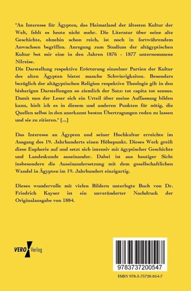 "An Interesse für Ägypten, das Heimatland der ältesten Kultur der Welt, fehlt es heute nicht mehr. Die Literatur über seine alte Geschichte, ohnehin schon reich, ist noch in fortwährendem Anwachsen begriffen. Anregung zum Studium der altägyptischen Kultur bot mir eine in den Jahren 1876 - 1877 unternommene Nilreise.