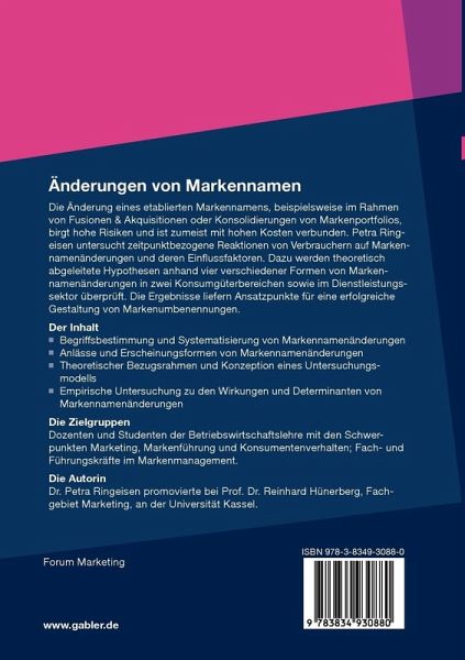 Die Änderung eines etablierten Markennamens, beispielsweise im Rahmen von Fusionen & Akquisitionen oder Konsolidierungen von Markenportfolios, birgt hohe Risiken und ist zumeist mit hohen Kosten verbunden. Petra Ringeisen untersucht zeitpunktbezogene Reaktionen von Verbrauchern auf Markennamenänderungen und deren Einflussfaktoren. Dazu werden theoretisch abgeleitete Hypothesen anhand vier verschiedener Formen von Markennamenänderungen in zwei Konsumgüterbereichen sowie im Dienstleistungssektor überprüft. Die Ergebnisse liefern Ansatzpunkte für eine erfolgreiche Gestaltung von Markenumbenennungen.