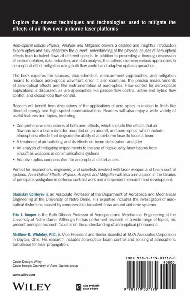 Perfect for researchers, engineers, and scientists involved with laser weapon and beam control systems, Aero-Optical Effects: Physics, Analysis and Mitigation will also earn a place in the libraries of principal investigators in defense contract work and independent research and development.