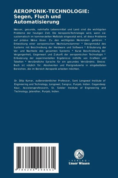Wasser, gesunde, nahrhafte Lebensmittel und Land sind die wichtigsten Probleme der heutigen Zeit. Die Aeroponik-Technologie wird, wenn sie systematisch im kommerziellen Maßstab eingesetzt wird, all diese Probleme auf präzise Weise lösen. Zu den wichtigsten Merkmalen gehören: _ Entwicklung einer aeroponischen Wachstumskammer _ Designmodul des Systems mit Beschreibung der Hardware und Software _ Erläuterung der Vor- und Nachteile des gesamten Systems _ Kurze Beschreibung der Vergangenheit, Gegenwart und Zukunft der aeroponischen Technologie _ Erläuterung der experimentellen Ergebnisse mithilfe von Grafiken und Tabellen _ Verständliche Sprache für ein gesundes Verständnis. Dieses Buch ist nützlich für: Absolventen und Postgraduierte in eingebetteten Bereichen, die im Bereich Aeroponik arbeiten möchten.