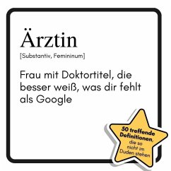 Google kennt Symptome, aber "Ärztin: Frau mit Doktortitel, die besser weiß, was dir fehlt als Google" kennt die Geschichten dahinter - und das mit einer Portion Humor, die selbst das Wartezimmer zum Comedy-Club macht. 50 Begriffe aus dem Alltag einer Ärztin werden hier so witzig und pointiert erklärt, dass selbst der Rezeptblock schmunzeln muss. Jede Definition wird von einer passenden Illustration begleitet, die zeigt: Medizin ist mehr als nur Lateinvokabeln und weiße Kittel.Für wen dieses Buch perfekt ist:- Für alle, die Medizin mit Humor nehmen- Für Ärztinnen, Medizinstudierende und Praxisteams- Für Fans von cleveren Wortspielen und CartoonsEin Geschenk, das in keiner Praxis fehlen darf und garantiert für Lacher sorgt - ob im Wartezimmer, auf dem Nachttisch oder als Mitbringsel für die nächste Visite.Was dieses Buch bietet:- 50 lustige Definitionen rund um den Arztberuf- Passende Illustrationen zu jedem Begriff- Medizinischer Alltag mit Augenzwinkern- Ideales Geschenk für Gesundheitsprofis und Patienten