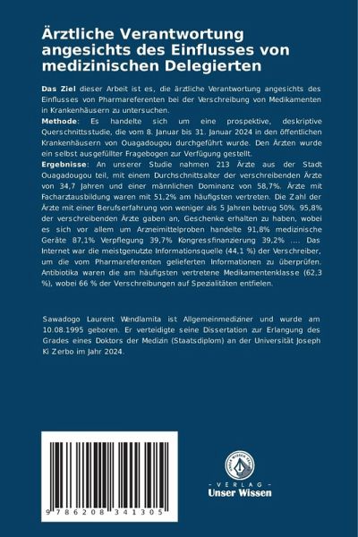 Das Ziel dieser Arbeit ist es, die ärztliche Verantwortung angesichts des Einflusses von Pharmareferenten bei der Verschreibung von Medikamenten in Krankenhäusern zu untersuchen.Methode: Es handelte sich um eine prospektive, deskriptive Querschnittsstudie, die vom 8. Januar bis 31. Januar 2024 in den öffentlichen Krankenhäusern von Ouagadougou durchgeführt wurde. Den Ärzten wurde ein selbst ausgefüllter Fragebogen zur Verfügung gestellt.Ergebnisse: An unserer Studie nahmen 213 Ärzte aus der Stadt Ouagadougou teil, mit einem Durchschnittsalter der verschreibenden Ärzte von 34,7 Jahren und einer männlichen Dominanz von 58,7%. Ärzte mit Facharztausbildung waren mit 51,2% am häufigsten vertreten. Die Zahl der Ärzte mit einer Berufserfahrung von weniger als 5 Jahren betrug 50%. 95,8% der verschreibenden Ärzte gaben an, Geschenke erhalten zu haben, wobei es sich vor allem um Arzneimittelproben handelte 91,8% medizinische Geräte 87,1% Verpflegung 39,7% Kongressfinanzierung 39,2% .... Das Internet war die meistgenutzte Informationsquelle (44,1 %) der Verschreiber, um die vom Pharmareferenten gelieferten Informationen zu überprüfen. Antibiotika waren die am häufigsten vertretene Medikamentenklasse (62,3 %), wobei 66 % der Verschreibungen auf Spezialitäten entfielen.