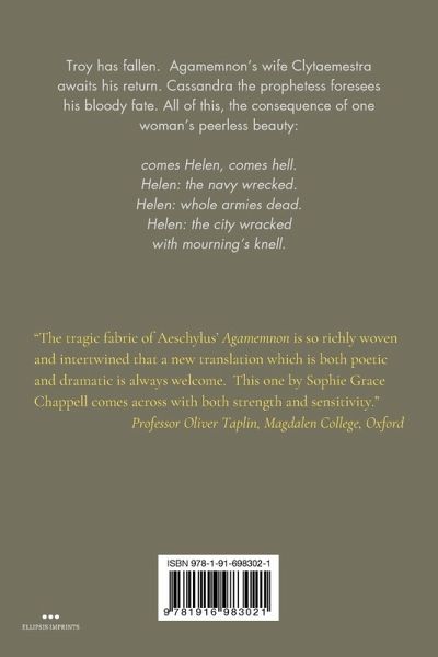 Aeschylus's play Agamemnon was first produced at the City Dionysia in Athens in 458 BC, where it was the first of three plays that together constituted the Oresteia. The Oresteia won first prize in that year's competition. This new translation by Sophie Grace Chappell comes across with both strength and sensitivity, providing a new read of the text for the modern age.