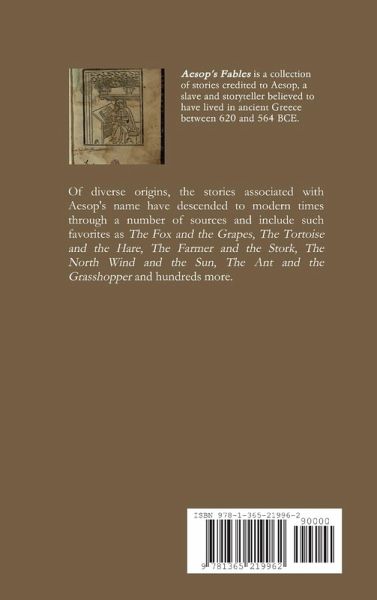 Aesop's Fables is a collection of stories credited to Aesop, a slave and storyteller believed to have lived in ancient Greece between 620 and 564 BCE. Of diverse origins, the stories associated with Aesop's name have descended to modern times through a number of sources and include such favorites as The Fox and the Grapes, The Tortoise and the Hare, The Farmer and the Stork, The North Wind and the Sun, The Ant and the Grasshopper and hundreds more.