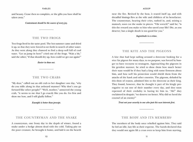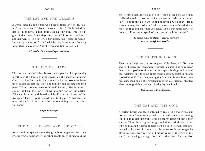 For nearly three thousand years, the fables of Aesop have amused people of all ages as they provide common-sense lessons in the conduct of everyday life. The colorful characters and brief tales, by turns amusing and frightening, deliver a how-to course in applied moral philosophy.
