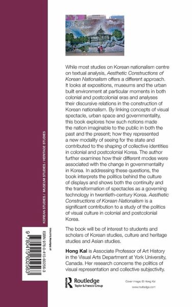 While most studies on Korean nationalism centre on textual analysis, Aesthetic Constructions of Korean Nationalism offers a different approach. It looks at expositions, museums and the urban built environment at particular moments in both colonial and postcolonial eras and analyses their discursive relations in the construction of Korean nationalism. By linking concepts of visual spectacle, urban space and governmentality, this book explores how such notions made the nation imaginable to the public in both the past and the present; how they represented a new modality of seeing for the state and contributed to the shaping of collective identities in colonial and postcolonial Korea. The author further examines how their different modes were associated with the change in governmentality in Korea. In addressing these questions, the book interprets the politics behind the culture of displays and shows both the continuity and the transformation of spectacles as a governing technology in twentieth-century Korea. Aesthetic Constructions of Korean Nationalism is a significant contribution to a study of the politics of visual culture in colonial and postcolonial Korea. The book will be of interest to students and scholars of Korean Studies, Culture and Heritage Studies and Asian Studies.