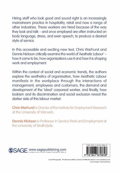 This accessible and exciting new text looks at the implications of aesthetic labour for work and employment by contextualizing debates and offering a critical approach. The origins of aesthetic labour are explored, as well as the relevant theories from business and management, and sociology. Coverage includes key topics such as: corporate strategy; recruitment and selection practices; and discrimination.
