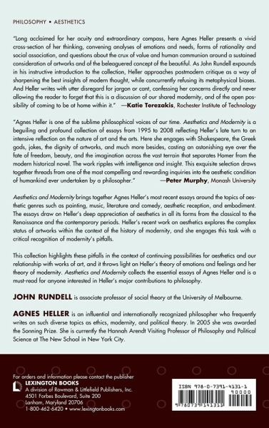 Aesthetics and Modernity brings together Agnes Heller's most recent essays on aesthetic genres such as painting, music, literature and comedy, aesthetic reception and embodiment in the context of the continuing pitfalls of modernity. The essays also throw light on Heller's theories of values, emotions and feelings, embodiment, and modernity. Those with an interest in philosophy, critical theory, aesthetics, and social theory will find this collection illuminating, and an essential addition to any philosophy bookshelf.