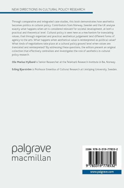 Through comparative and integrated case studies, this book demonstrates how aesthetics becomes politics in cultural policy. Contributors from Norway, Sweden and the UK analyse exactly what happens when art is considered relevant for societal development, at both a practical and theoretical level. Cultural policy is seen here as a mechanism for translating values, that through organized and practical aesthetical judgement lend different forms of agency to the arts. What happens when aesthetical value is reinterpreted as political value? What kinds of negotiations take place at a cultural policy ground level when values are translated and reinterpreted? By addressing these questions, the editors present an original collection that effectively centralises and investigates the role of aesthetics in cultural policy research.
