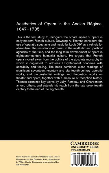 This study recognizes the broad impact of opera in early-modern French culture. Downing A. Thomas considers the use of operatic spectacle and music by Louis XIV as a vehicle for absolutism; the resistance of music to the aesthetic and political agendas of the time; and the long-term development of opera in eighteenth-century humanist culture. He argues that French opera moved away from the politics of the absolute monarchy in which it originated to address Enlightenment concerns with sensibility and feeling. The book combines close readings of significant seventeenth-century and eighteenth-century operatic works, circumstantial writings and theoretical works on theatre and opera, together with a measure of reception history. Thomas examines key works by Lully, Rameau and Charpentier, among others, and extends his reach from the late seventeenth century to the end of the eighteenth.