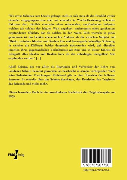 Adolf Zeising, der vor allem als Begründer und Verbreiter der Lehre vom Goldenen Schnitt bekannt geworden ist, beschreibt in seinem vorliegenden Werk seine ästhetischen Forschungen. Einleitend gibter eine Übersicht der früheren Systeme. Er schreibt über das Schöne überhaupt, das Komische, das Tragische, das Reizende und vieles mehr.