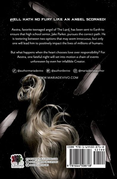 Hell hath no fury like an angel scorned! Aestra, favorite teenaged angel of The Lord, has been sent to Earth to ensure that high school senior, Jake Parker, pursues the correct path. He is teetering between two options that may seem innocuous, but only one will lead him to positively impact the lives of millions of humans. But what happens when the heart chooses love over responsibility? For Aestra, one fateful night will set into motion a chain of events unforeseen by even her infallible Creator.