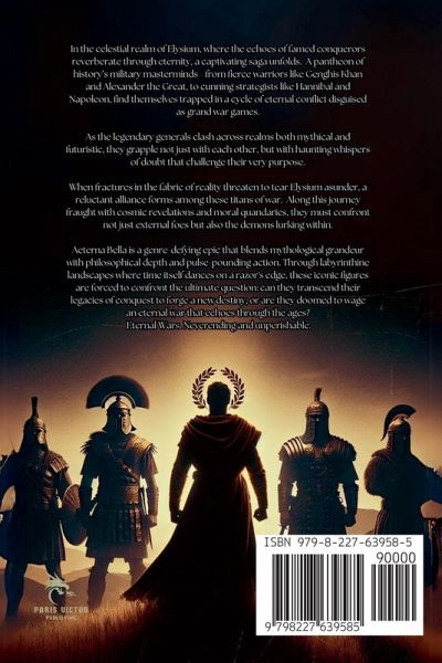 In the mystical realm of Elysium, history's greatest conquerors wage an endless battle for supremacy. Ruled by the primordial Cronus, this paradise was meant to be a peaceful rest for legends like Alexander the Great, Julius Caesar, and Napoleon Bonaparte. But simmering rivalries have boiled over, triggering the Elysian Wars. As iconic generals recruit allies and launch campaigns to prove their supremacy, Elysium descends into chaos. Alexander's ambition leaves ruins in his wake, while Napoleon's strategic brilliance outmaneuvers his rivals. Genghis Khan and Hannibal Barca embraced open war, and emerging leaders like Jeanne of Arc rallied to defend their homes. In the midst of the escalating conflict, some of them begin questioning the nature of their existence. Is Elysium truly the afterlife they imagined, or an elaborate illusion? As the wars threaten to destroy their paradise, these restless souls embark on a perilous quest for truth that stretches across cosmic realms. To save Elysium and uncover the secrets of their reality, rival factions must become allies. Yet transcending centuries of ego and rivalry proves a Herculean challenge. Their journey forces each conqueror to confront the darkness within themselves and choose redemption over personal glory for the greater good. Will these legends humble themselves and forge an eternal fellowship - or will Elysium crumble beneath the weight of their hubris? Aeterna Bella is an epic alternative historical fantasy that explores the fine line between ambition and madness, redemption and ruin. As the greatest leaders of humanity battle to save their paradise and themselves, no soul will remain unchanged.