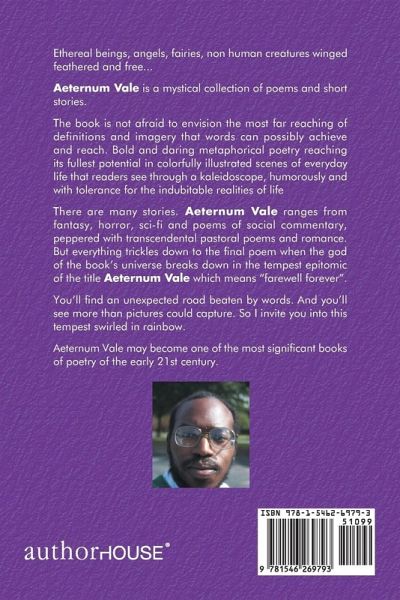 Ethereal beings, angels, fairies, non human creatures winged feathered and free... Aeternum Vale is a mystical collection of poems and short stories. The book is not afraid to envision the most far reaching of definitions and imagery that words can possibly achieve and reach. Bold and daring metaphorical poetry reaching its fullest potential in colorfully illustrated scenes of everyday life that readers see through a kaleidoscope, humorously and with tolerance for the indubitable realities of life There are many stories. Aeternum Vale ranges from fantasy, horror, sci-fi and poems of social commentary, peppered with transcendental pastoral poems and romance. But everything trickles down to the final poem when the god of the book's universe breaks down in the tempest epitomic of the title Aeternum Vale which means "farewell forever". You'll find an unexpected road beaten by words. And you'll see more than pictures could capture. So I invite you into this tempest swirled in rainbow. Aeternum Vale may become one of the most significant books of poetry of the early 21st century.