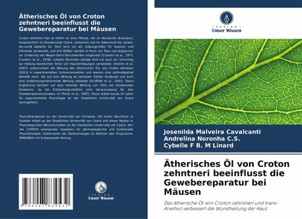 Croton zehntneri Pax at Hoffm ist eine Pflanze, die im Nordosten Brasiliens, hauptsächlich im Bundesstaat Ceará, vorkommt und im Volksmund als canela-de-cunhã bekannt ist. Dort wird sie als Süßungsmittel für Speisen und Getränke verwendet, und ihre Blätter werden in Form von Tees und Aufgüssen zur Linderung von Magen-Darm-Beschwerden eingesetzt (Craveiro et al., 1977; Craveiro et al., 1978). Lokalen Berichten zufolge wird sie auch als Umschlag zur Heilung bestimmter Arten von Hautverletzungen verwendet. Oliveira et al. (2001) untersuchten die Wirkung des ätherischen Öls von Croton zehntneri (OECz) in experimentellen Schmerzmodellen und wiesen eine antinozizeptive Aktivität nach, die auf eine Wirkung an zentralen Stellen hindeutet und auch eine entzündungshemmende Wirkung nahelegt (OLIVEIRA et al., 2001). Diese Ergebnisse könnten auf eine heilende Wirkung von OECz bei Hautwunden hinweisen, da die Entzündungsreaktion eine Voraussetzung für den Gewebereparaturprozess ist (Porto et al., 2007). Diese Arbeit wurde im Labor für experimentelle Physiologie an der Staatlichen Universität von Ceará durchgeführt.