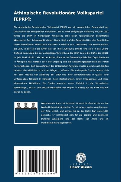 Die Äthiopische Revolutionäre Volkspartei (EPRP) war ein wesentlicher Bestandteil der Geschichte der äthiopischen Revolution. Bis zu ihrer endgültigen Auflösung im Jahr 1991 führte die EPRP im Nordwesten Äthiopiens aktiv einen revolutionären bewaffneten Widerstand. Der Schwerpunkt dieser Studie liegt auf der Rekonstruktion der Geschichte dieses bewaffneten Widerstands der EPRP in Mätäkal (ca. 1983-1991). Die Studie umfasst die Zeit, in der sich die EPRP fast von ihrer Auflösung erholte und sich in das Quara-Tiefland zurückzog, bis zur endgültigen Vernichtung der EPRP durch die Kräfte der EPRDF im Jahr 1991. Ähnlich wie bei der Partei, die eine der frühesten politischen Organisationen in Äthiopien war, werden auch der Ursprung und die Entstehungsgeschichte der Partei hervorgehoben. Seit den Anfängen der äthiopischen Revolution hatte sie sich nach Kräften bemüht, die Militärherrschaft der Därge zu stürzen. Die vorliegende Studie befasst sich mit dem Prozess der Auflösung der EPRP und ihrer Wiederbelebung in Quara, ihrer umfassenden Tätigkeit in Mätäkäl, ihren Bestrebungen, ihrem Engagement und ihren allgemeinen Aktivitäten. Die Studie versucht, einen Einblick in die Sicherheits-, Verwaltungs-, Sozial- und Wirtschaftsaspekte der Region in Bezug auf die EPRP und die Därge zu geben.