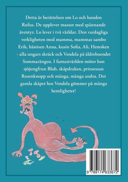 Detta är berättelsen om Lo och hunden Rufus. De upplever massor med spännande äventyr. Lo lever i två världar. Den vardagliga verkligheten med mamma, mammas sambo Erik, bästisen Anna, kusin Sofia, Ali, Hemsken - alla ungars skräck och Vendela på äldreboendet Sommarängen. I fantasivärlden möter hon sjöjungfrun Blub, skåpdraken, prinsessan Rosenknopp och många, många andra. Det gamla skåpet hos Vendela gömmer på många hemligheter!