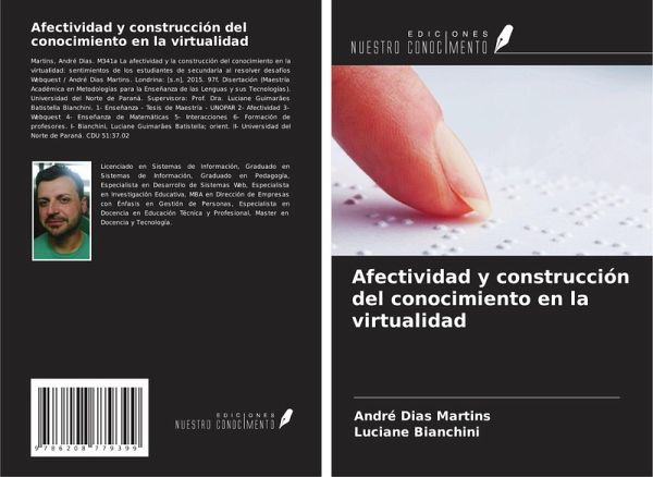 Martins, André Dias. M341a La afectividad y la construcción del conocimiento en la virtualidad: sentimientos de los estudiantes de secundaria al resolver desafíos Webquest / André Dias Martins. Londrina: [s.n], 2015. 97f. Disertación (Maestría Académica en Metodologías para la Enseñanza de las Lenguas y sus Tecnologías). Universidad del Norte de Paraná. Supervisora: Prof. Dra. Luciane Guimarães Batistella Bianchini. 1- Enseñanza - Tesis de Maestría - UNOPAR 2- Afectividad 3- Webquest 4- Enseñanza de Matemáticas 5- Interacciones 6- Formación de profesores. I- Bianchini, Luciane Guimarães Batistella; orient. II- Universidad del Norte de Paraná. CDU 51:37.02