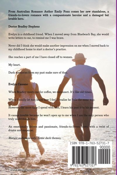 From Australian Romance Author Emily Foxx comes her new standalone, a friends-to-lovers romance with a compassionate heroine and a damaged but lovable hero. Doctor Bradley Stephens Evelyn is a childhood friend. When I moved away from Bluebeach Bay, she would write letters to me, to remind me I was brave. Never did I think she would make another impression on me when I moved back to my childhood home to start a doctor's practice. She reaches a part of me I have closed off to women. My heart. Dark memories from my past make sure of that. Evelyn Cassano When Bradley meets me for coffee, we reconnect. It's like old times. When I finally let him know how I feel, I realize he feels the same way. However, the more time I spend with him, I learn his past is in his present. It causes trouble because he won't open up to me when I am the only person who truly understands him. An emotionally driven and passionate, friends-to-lovers story, with a twist of drama and suspense. Mature audiences only. Some dark themes. Check my website for content warnings