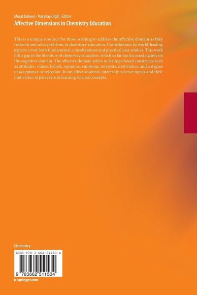 This is a unique resource for those wishing to address the affective domain as they research and solve problems in chemistry education. Contributions by world-leading experts cover both fundamental considerations and practical case studies. This work fills a gap in the literature of chemistry education, which so far has focussed mainly on the cognitive domain. The affective domain refers to feelings-based constructs such as attitudes, values, beliefs, opinions, emotions, interests, motivation, and a degree of acceptance or rejection. It can affect students' interest in science topics and their motivation to persevere in learning science concepts.
