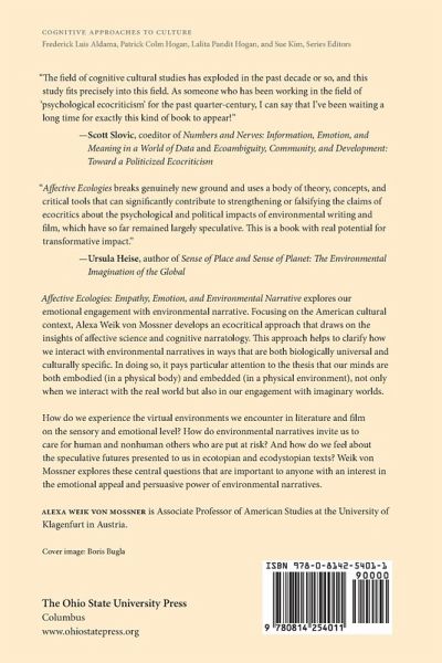 Affective Ecologies: Empathy, Emotion, and Environmental Narrative explores our emotional engagement with environmental narrative. Focusing on the American cultural context, Alexa Weik von Mossner develops an ecocritical approach that draws on the insights of affective science and cognitive narratology. This approach helps to clarify how we interact with environmental narratives in ways that are both biologically universal and culturally specific. In doing so, it pays particular attention to the thesis that our minds are both embodied (in a physical body) and embedded (in a physical environment), not only when we interact with the real world but also in our engagement with imaginary worlds. How do we experience the virtual environments we encounter in literature and film on the sensory and emotional level? How do environmental narratives invite us to care for human and nonhuman others who are put at risk? And how do we feel about the speculative futures presented to us in ecotopian and ecodystopian texts? Weik von Mossner explores these central questions that are important to anyone with an interest in the emotional appeal and persuasive power of environmental narratives.