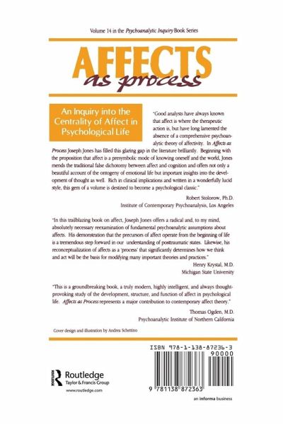 In this readable meditation on the nature of emotional experience, Joseph Jones takes the reader on a fascinating walking-tour of current research findings bearing on emotional development. Beginning with a nuanced reappraisal of Freud's philosophical premises, he argues that Freud's reliance on "primary process" as the means of linking body and mind inadvertantly stripped affects of their process role. Further, the resulting emphasis on fantasy left the problem of conceptualizing the mental life of the prerepresentational infant in a theoretical limbo. Affects as Process offers an elegantly simple way out of this impasse. Drawing in the literatures of child development, ethology, and neuroscience, Jones argues that, in their simplest form, affects are best understood as the presymbolic representatives and governors of motivational systems. So conceptualized, affects, and not primary process, constitute the initial processing system of the prerepresentational infant. It then becomes possible to re-vision early development as the sequential maturation of different motivational systems, each governed by a specific presymbolic affect. More complex emotional states, which emerge when the toddler begins to think symbolically, represent the integration of motivational systems and thought as maturation plunges the child into a world of loves and hates that cannot be escaped simply through behavior. Jones' reappraisal of emotional development in early childhood and beyond clarifies the strengths and weaknesses of such traditional concepts as infantile sexuality, object relations, internalization, splitting, and the emergence of the dynamic unconscious. The surprising terminus of his excursion, moreover, is the novel perspective on the self as an emergent phenomenon reflecting the integration of affective and symbolic processing systems.