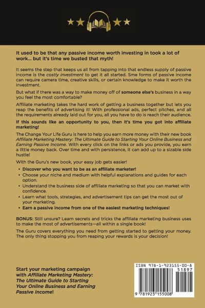 Embark on a transformative journey into the lucrative world of affiliate marketing with "Affiliate Marketing Mastery: The Ultimate Guide to Starting Your Online Business and Earning Passive Income." This isn't just a guide; it's your launchpad to consistent financial success and autonomy, unlocking the strategies for generating a substantial, steady revenue stream. Whether you're a novice or a seasoned marketer, this book is your comprehensive playbook. It strips away the mystery of affiliate marketing, providing actionable, no-nonsense tactics that evolve your status from beginner to expert affiliate marketer. Affiliate Marketing Mastery takes you into the epicenter of this profitable sphere, dissecting fundamental elements crucial for playing and dominating this game. Navigate the maze of selecting the perfect affiliate program, as the book illuminates various platforms - ClickBank, Amazon Associates, Rakuten Affiliate, and more. This isn't theoretical fluff; it's a practical, deep-dive analysis aiding your ascent in the affiliate marketing world. Content is your secret weapon, and this guide teaches you to wield it masterfully, crafting compelling written and video narratives that captivate audiences, promoting engagement and conversion. Moreover, it doesn't skirt the essential, often overlooked aspect of legalities. The inclusive chapter on tax obligations and regulations is an invaluable resource, demystifying complex concepts applicable within and beyond the US. Inspire and propel your journey with real success stories from affiliate marketing mavens, extracting insights from their journeys, triumphs, and setbacks. You're not just learning; you're synthesizing their experiences to pave your unique road to affiliate prominence. "Affiliate Marketing Mastery" is a treasure trove of cutting-edge strategies and tips, spotlighting lucrative niches, stellar products, and indispensable free and premium marketing tools, primed to amplify your performance. Launch, advertise, and optimize your campaigns with finesse, targeting the ideal demographic with our explicit, methodical walkthroughs. This book isn't hypothetical-it's a practical, immediate action manifesto. Why is "Affiliate Marketing Mastery" an urgent must-have? It's a pragmatic, hands-on manual, offering immediate strategy implementation. It's economically invaluable, teeming with professional insights that prevent costly trial and error. ¿¿In "Affiliate Marketing Mastery," you'll discover: The only 3 techniques you need to master to become a successful affiliate marketer The 5 ways to select the perfect affiliate program that aligns with your goals The 4 things you should know about content creation in affiliate marketing Secrets to launching successful affiliate marketing campaigns without spending a fortune What successful affiliate marketers like David McSweeny and Darren Rowse say about the industry Why following generic marketing advice is hurting your progress - and what to do instead The 3 best affiliate marketing tools on the market to help you on your journey ...and so much MORE! Don't just read-immerse, act, and transform with "Affiliate Marketing Mastery." This is more than a purchase; it's an investment in your affluent, self-sufficient future. Seize your copy. Embrace the revolution your future self will laud you for. The epoch of your Affiliate Marketing Mastery commences NOW!