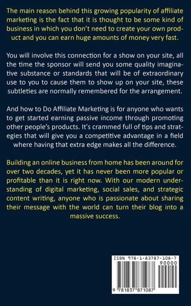 The main reason behind this growing popularity of affiliate marketing is the fact that it is thought to be some kind of business in which you don't need to create your own product and you can earn huge amounts of money very fast. You will involve this connection for a show on your site, all the time the sponsor will send you some quality imaginative substance or standards that will be of extraordinary use to you to cause them to show up on your site, these subtleties are normally remembered for the arrangement. And how to Do Affiliate Marketing is for anyone who wants to get started earning passive income through promoting other people's products. It's crammed full of tips and strategies that will give you a competitive advantage in a field where having that extra edge makes all the difference. Building an online business from home has been around for over two decades, yet it has never been more popular or profitable than it is right now. With our modern understanding of digital marketing, social sales, and strategic content writing, anyone who is passionate about sharing their message with the world can turn their blog into a massive success.