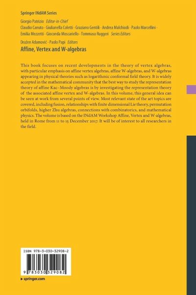 This book focuses on recent developments in the theory of vertex algebras, with particular emphasis on affine vertex algebras, affine W-algebras, and W-algebras appearing in physical theories such as logarithmic conformal field theory. It is widely accepted in the mathematical community that the best way to study the representation theory of affine Kac-Moody algebras is by investigating the representation theory of the associated affine vertex and W-algebras. In this volume, this general idea can be seen at work from several points of view. Most relevant state of the art topics are covered, including fusion, relationships with finite dimensional Lie theory, permutation orbifolds, higher Zhu algebras, connections with combinatorics, and mathematical physics. The volume is based on the INdAM Workshop Affine, Vertex and W-algebras, held in Rome from 11 to 15 December 2017. It will be of interest to all researchers in the field.