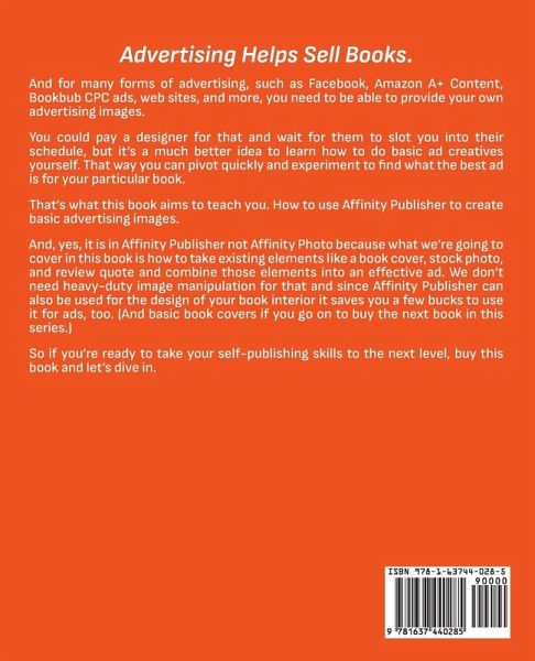 Advertising Helps Sell Books. And for many forms of advertising, such as Facebook, Amazon A+ Content, Bookbub CPC ads, web sites, and more, you need to be able to provide your own advertising images. You could pay a designer for that and wait for them to slot you into their schedule, but it's a much better idea to learn how to do basic ad creatives yourself. That way you can pivot quickly and experiment to find what the best ad is for your particular book. That's what this book aims to teach you. How to use Affinity Publisher to create basic advertising images. And, yes, it is in Affinity Publisher not Affinity Photo because what we're going to cover in this book is how to take existing elements like a book cover, stock photo, and review quote and combine those elements into an effective ad. We don't need heavy-duty image manipulation for that and since Affinity Publisher can also be used for the design of your book interior it saves you a few bucks to use it for ads, too. (And basic book covers if you go on to buy the next book in this series.) So if you're ready to take your self-publishing skills to the next level, buy this book and let's dive in.