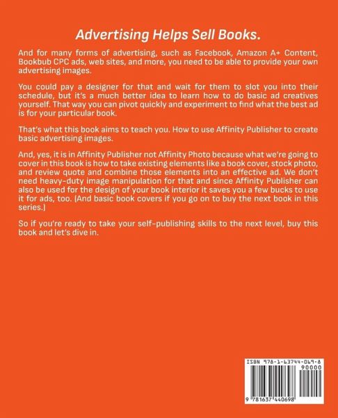 Advertising Helps Sell Books. And for many forms of advertising, such as Facebook, Amazon A+ Content, Bookbub CPC ads, web sites, and more, you need to be able to provide your own advertising images. You could pay a designer for that and wait for them to slot you into their schedule, but it's a much better idea to learn how to do basic ad creatives yourself. That way you can pivot quickly and experiment to find what the best ad is for your particular book. That's what this book aims to teach you. How to use Affinity Publisher to create basic advertising images. And, yes, it is in Affinity Publisher not Affinity Photo because what we're going to cover in this book is how to take existing elements like a book cover, stock photo, and review quote and combine those elements into an effective ad. We don't need heavy-duty image manipulation for that and since Affinity Publisher can also be used for the design of your book interior it saves you a few bucks to use it for ads, too. (And basic book covers if you go on to buy the next book in this series.) So if you're ready to take your self-publishing skills to the next level, buy this book and let's dive in.