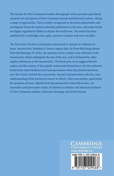 The first letter of John is commonly understood to contain no reference to Jesus's resurrection. Matthew D. Jensen argues that, far from this being absent from the theology of 1 John, the opening verses contain a key reference to the resurrection which undergirds the rest of the text and is bolstered by other explicit references to the resurrection. The book goes on to suggest that the author and the readers of this epistle understand themselves to be the authentic Israel from which faithless Jews had apostatized when they denied that Jesus was 'the Christ' and left the community. Jensen's interpretation calls for a new understanding of the historical context in which 1 John was written, particularly the question of Jesus' identity from the perspective of his fellow Jews. An innovative and provocative study, of interest to scholars and advanced students of New Testament studies, Johannine theology and Jewish history.