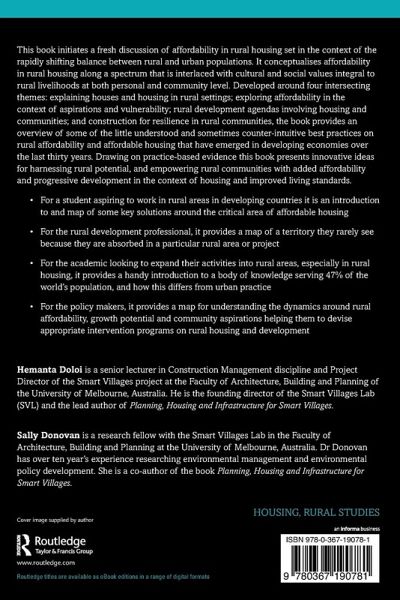 This book initiates a fresh discussion of affordability in rural housing, set in the context of the rapidly shifting balance between rural and urban populations. It provides a handy introduction to a body of knowledge serving 45% of the world's population, and how this differs from urban practice.