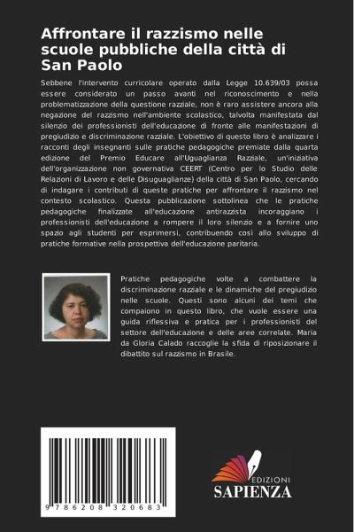 Sebbene l'intervento curricolare operato dalla Legge 10.639/03 possa essere considerato un passo avanti nel riconoscimento e nella problematizzazione della questione razziale, non è raro assistere ancora alla negazione del razzismo nell'ambiente scolastico, talvolta manifestata dal silenzio dei professionisti dell'educazione di fronte alle manifestazioni di pregiudizio e discriminazione razziale. L'obiettivo di questo libro è analizzare i racconti degli insegnanti sulle pratiche pedagogiche premiate dalla quarta edizione del Premio Educare all'Uguaglianza Razziale, un'iniziativa dell'organizzazione non governativa CEERT (Centro per lo Studio delle Relazioni di Lavoro e delle Disuguaglianze) della città di San Paolo, cercando di indagare i contributi di queste pratiche per affrontare il razzismo nel contesto scolastico. Questa pubblicazione sottolinea che le pratiche pedagogiche finalizzate all'educazione antirazzista incoraggiano i professionisti dell'educazione a rompere il loro silenzio e a fornire uno spazio agli studenti per esprimersi, contribuendo così allo sviluppo di pratiche formative nella prospettiva dell'educazione paritaria.