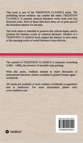 This book (hardcover) is part of the TREDITION CLASSICS. It contains classical literature works from over two thousand years. Most of these titles have been out of print and off the bookstore shelves for decades. The book series is intended to preserve the cultural legacy and to promote the timeless works of classical literature. Readers of a TREDITION CLASSICS book support the mission to save many of the amazing works of world literature from oblivion. With this series, tredition intends to make thousands of international literature classics available in printed format again worldwide.