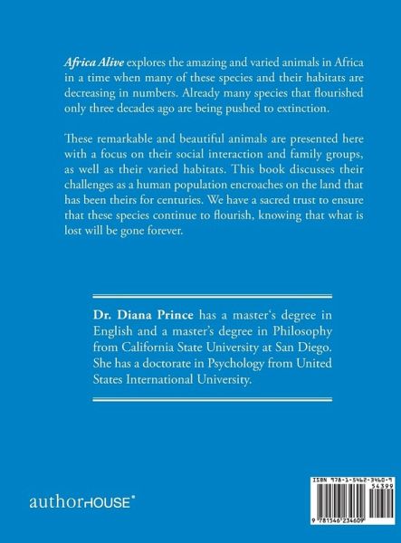 Africa Alive explores the amazing and varied animals in Africa in a time when many of these species and their habitats are decreasing in numbers. Already many species that flourished only three decades ago are being pushed to extinction. These remarkable and beautiful animals are presented here with a focus on their social interaction and family groups, as well as their varied habitats. This book discusses their challenges as a human population encroaches on the land that has been theirs for centuries. We have a sacred trust to ensure that these species continue to flourish, knowing that what is lost will be gone forever.