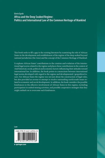 Introduction.- African States and the Evolution of the Regime of the Area and the Common Heritage of Mankind.- African States and Delimitation of the Common Heritage of Mankind Area.- The Legal Status of the Area: Common Heritage of Mankind and African States.- Africa and Part XI of Law of the Sea Convention (LOSC) 1982 Provisions, as Amended by the 1994 Implementation Agreement.- African States and the Institutions of the Common Heritage of Mankind Regime in the Area.- African States: The System of Mining of the Common Heritage of Mankind Resources in the Area.- Participation of African States in Deep Seabed Mining of the Common Heritage of Mankind Resources in the Area: Problems and Prospects.- General Conclusion.