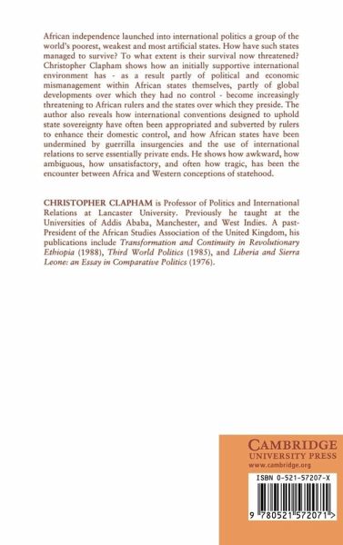 African independence launched into international politics a group of the world's poorest, weakest, and most artificial states. How have such states managed to survive? To what extent is their survival now threatened? Christopher Clapham shows how an initially supportive international environment has - as a result partly of political and economic mismanagement within African states themselves, partly of global developments over which they had no control - become increasingly threatening to African rulers and the states over which they preside. The author also reveals how international conventions designed to uphold state sovereignty have often been appropriated and subverted by rulers to enhance their domestic control, and how African states have been undermined by guerrilla insurgencies and the use of international relations to serve essentially private ends. He shows how awkward, how ambiguous, how unsatisfactory, and often how tragic, has been the encounter between Africa and Western conceptions of statehood.
