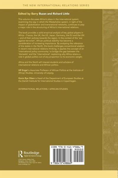 An important new discussion of Africa's place in the international system. This volume discusses Africa's place in the international system, examining the way in which the Westphalian system, in light of the impact of globalization and transnational networks, continues to play a major role in the structuring of Africa's international relations. The book provides a solid empirical analysis of key global players in Africa - France, the UK, the US, Japan, Germany, the EU and the UN - and of their policies towards the region. In the context of the 'war against terrorism', African political stability becomes a consideration of increasing importance. By analyzing the relevance of the states in the North, this book challenges conventional wisdom in recent international relations thinking. It applies the concept of an 'international policy community' to bridge the gap between the 'domestic' and the 'international', explaining why Africa retains a role in global politics out of any proportion to its economic weight.