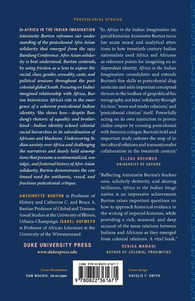 In Africa in the Indian Imagination Antoinette Burton reframes our understanding of the postcolonial Afro-Asian solidarity that emerged from the 1955 Bandung conference. Afro-Asian solidarity is best understood, Burton contends, by using friction as a lens to expose the racial, class, gender, sexuality, caste, and political tensions throughout the postcolonial global South. Focusing on India's imagined relationship with Africa, Burton historicizes Africa's role in the emergence of a coherent postcolonial Indian identity. She shows how-despite Bandung's rhetoric of equality and brotherhood-Indian identity echoed colonial racial hierarchies in its subordination of Africans and blackness. Underscoring Indian anxiety over Africa and challenging the narratives and dearly held assumptions that presume a sentimentalized, nostalgic, and fraternal history of Afro-Asian solidarity, Burton demonstrates the continued need for anti-heroic, vexed, and fractious postcolonial critique.