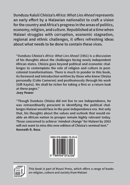 Dunduzu Kaluli Chisiza's Africa: What Lies Ahead represents an early effort by a Malawian nationalist to craft a vision for the country and Africa's progress in the areas of politics, economy, religion, and culture. Republished at a time when Malawi struggles with corruption, economic stagnation, regional and ethnic challenges, it offers refreshing ideas about what needs to be done to contain these vices.