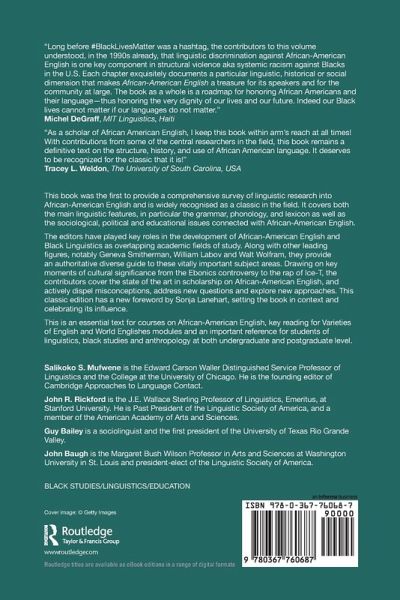 The editors have played key roles in the development of African-American English and Black Linguistics as overlapping academic fields of study. Along with other leading figures, notably Geneva Smitherman, William Labov and Walt Wolfram, they provide an authoritative diverse guide to these vitally important subject areas. Drawing on key moments of cultural significance from the Ebonics controversy to the rap of Ice-T, the contributors cover the state of the art in scholarship on African-American English, and actively dispel misconceptions, address new questions and explore new approaches. This classic edition has a new foreword by Sonja Lanehart, setting the book in context and celebrating its influence.