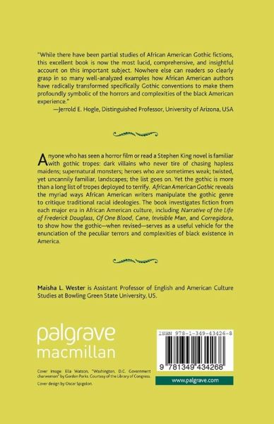 This new critique of contemporary African-American fiction explores its intersections with and critiques of the Gothic genre. Wester reveals the myriad ways writers manipulate the genre to critique the gothic's traditional racial ideologies and the mechanisms that were appropriated and re-articulated as a useful vehicle for the enunciation of the peculiar terrors and complexities of black existence in America. Re-reading major African American literary texts such as Narrative of the Life of Frederick Douglass, Of One Blood, Cane, Invisible Man, and Corregidora African American Gothic investigates texts from each major era in African American Culture to show how the gothic has consistently circulated throughout the African American literary canon.