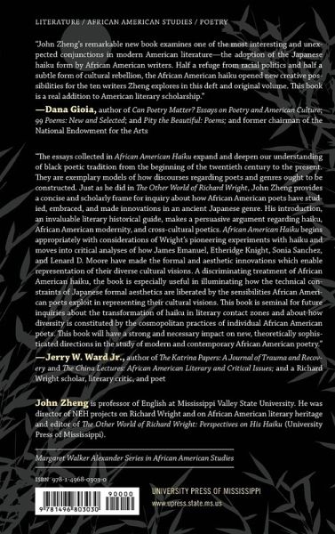 The first study solely dedicated to exploring the power of African American haiku Contributions by Yoshinobu Hakutani, Richard A. Iadonisi, Toru Kiuchi, Sheila Smith McKoy, Sachi Nakachi, Ce Rosenow, Meta L. Schettler,Virginia Whatley Smith, and Claude Wilkinson African American Haiku: Cultural Visions offers insights into African American poets' innovations in the haiku form, shedding light on a neglected aspect of black poetry. Notable scholars present new interpretations of well-known works. Essays trace the verse of five major African American haiku poets: Richard Wright, James Emanuel, Etheridge Knight, Sonia Sanchez, and Lenard D. Moore. Sachi Nakachi investigates the influence of Japanese aesthetics and Eastern philosophy on Richard Wright's haiku showing Wright's interest in the blues as poetry. Yoshinobu Hakutani analyzes the vision and affinity of jazz and haiku throughout James Emanuel's Jazz from the Haiku King. And Claude Wilkinson digs into Etheridge Knight's improvisation and adherence to tradition of haiku and African American vernacular form. The collection also explores how Sanchez creates a new American hybrid form of the modern haiku in English by blending haiku with her own principles of a black aesthetic. Toru Kiuchi shows how Lenard D. Moore expresses his experiences through haiku with his African American aesthetics and connections to black southern culture. By discussing multiple writers from a variety of disciplines in a single volume, the essayists compare and contrast the work created by writers, poets, and musicians, and illuminate the variety of methods African American authors used when adapting this traditional Japanese form. The result is a volume that offers rich insight into African American aesthetics, the black arts movement, gender issues, blues and jazz, and trends in contemporary poetry. John Zheng, Greenwood, Mississippi, is professor of English at Mississippi Valley State University. He was director of NEH projects on Richard Wright and on African American Literary Heritage and editor of The Other World of Richard Wright: Perspectives on His Haiku (University Press of Mississippi).